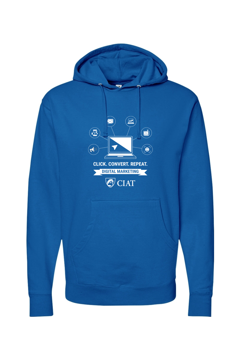 The Men’s Midweight Hooded Sweatshirt offers a classic fit and a jersey-lined hood for maximum comfort. With split-stitched double-needle sewing on all seams, twill neck tape, and 1×1 ribbing at cuffs & waistband, this sweatshirt is built to last. Metal eyelets and a pouch pocket add practicality, while the Digital Marketing DTF logo on the front adds a touch of style. Elevate your wardrobe with this versatile and durable sweatshirt — an excellent gift for Dad!