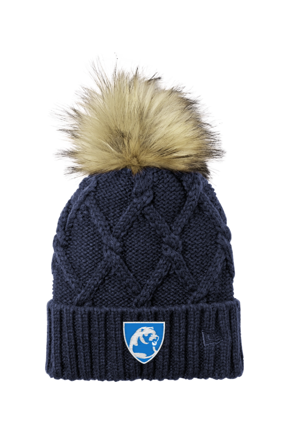 This on-trend women’s beanie features a thick ribbed cuff and a cozy cable knit crown, finished with a playful faux fur pom on top. Made from 100% acrylic, it’s soft, warm, and stylish. The tonal embroidered New Era flag adds a subtle, premium touch.